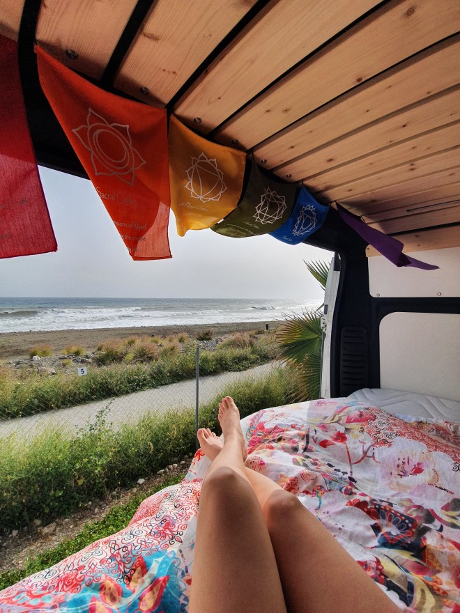Ich leben in meiner Blase; mache jeden Morgen Yoga, meditiere, schicke viel Liebe, Gesundheit und Frieden in die Welt und genieße den blick aufs meer von meinem Campervan, in den sogar die sonne scheint #firstrow