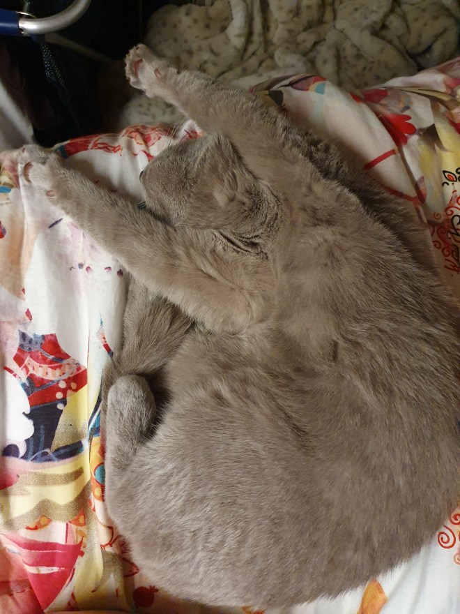 Tagsüber pennt er (weswegen ich mir wegen München gar keine Sorgen mehr mache, weil er wirklich 12 Stunden schläft) und nachts dreht er auf. Das ist bisschen schade, denn in Hamburg hatten wir einen anderen Rhythmus. Da ist er morgens mit mir auf den Balkon gekommen zum Atmen und Meditieren und abends ging es nochmal kurz raus. Nachts wurde brav geschlafen.
