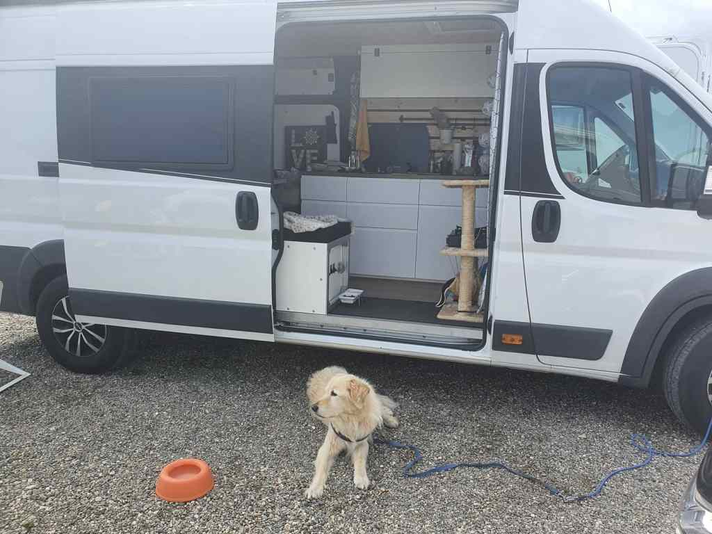 Wir dürfen ja mit unseren Wohnmobilen im Moment in der strengen Situation in Spanien nicht herausfahren. Aber es war in dem Fall ein medizinischer Notfall, somit durfte der Veterinärmediziner hereinkommen.