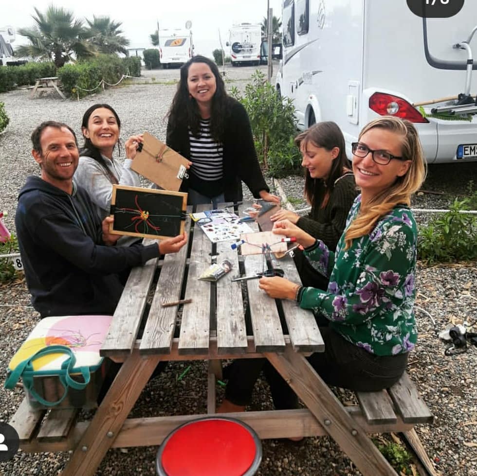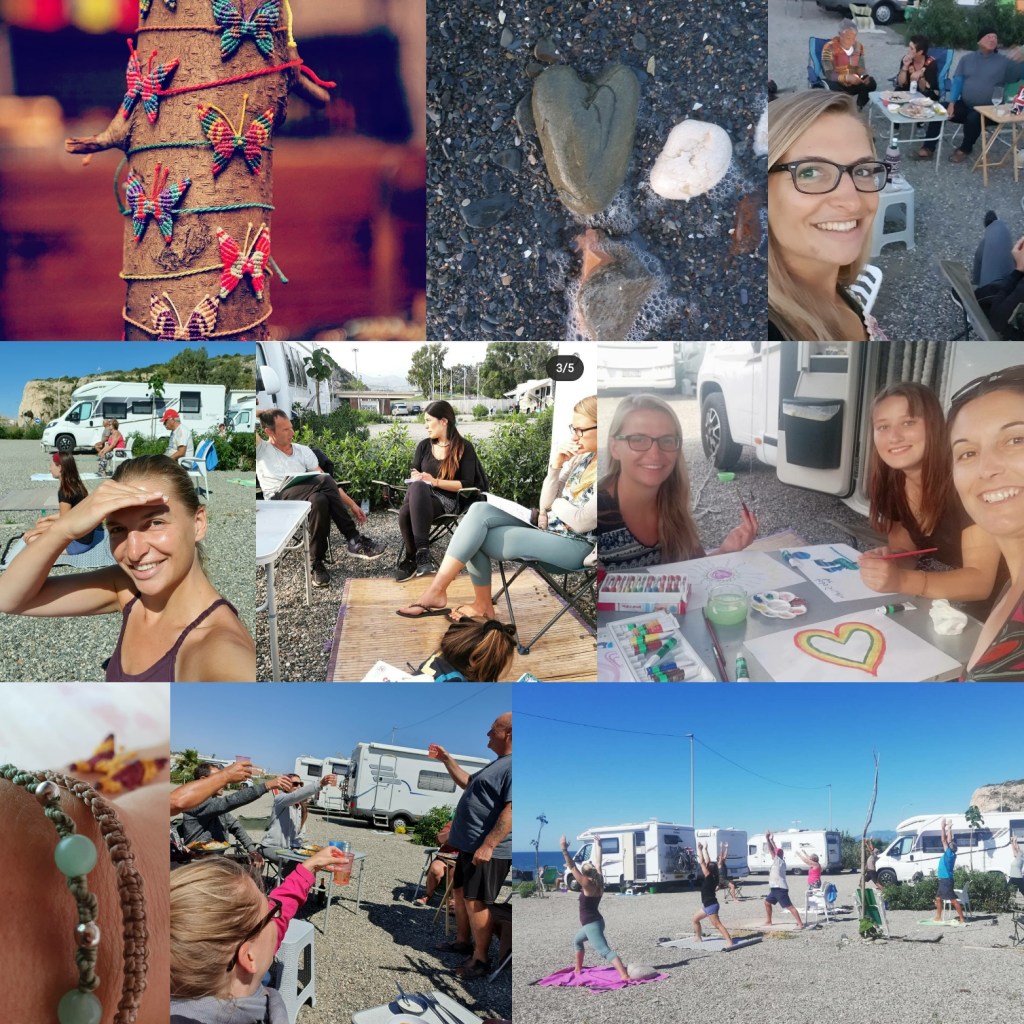 Alle lernen sich langsam kennen, es entsteht eine Community. Mitunter habe ich so viel zu tun: Yoga von 11h, wobei die Spanier „natürlich“ erst 11:17h anfangen und hinterher noch lange quatschen, sodass ich ca 13 Uhr zurück in meinem Van bin, um zu frühstückten und dann 14h anfange zu arbeiten. Des Weiteren machen wir wie gesagt kreative Arbeiten wie Armbänder knüpfen und ich lerne spanisch. Im Gegenzug unterrichte in Englisch und finde auch das total spannend.