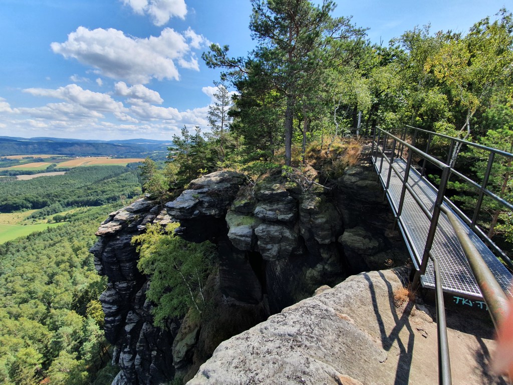 Oben auf der Plattform des Liliensteins treffen dann beide Routen zusammen. Hier gibt es ein Restaurant, die Felsbaude, die nur Freitags bis Montags und an Feiertagen geöffnet ist.