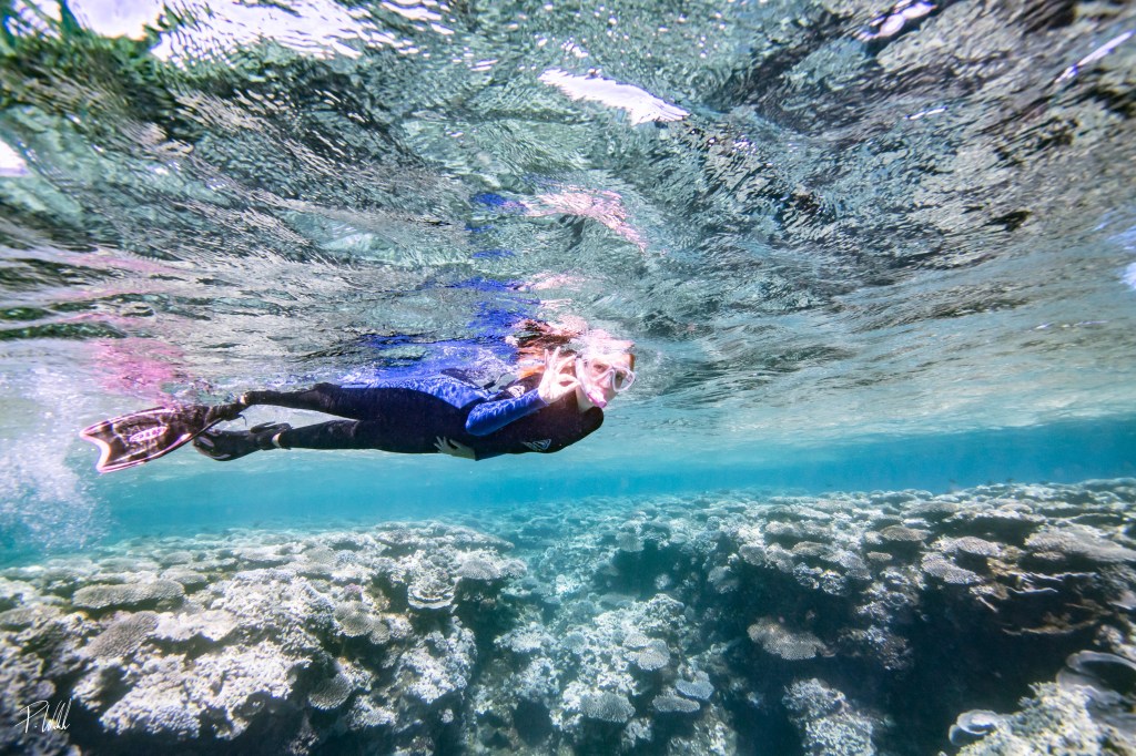 On the other hand there are sometimes strong currents. If you walk 300m to the left here, you can let the current carry you while snorkeling. At the end you have to watch out that you swim straight out of the current (never against the current), otherwise you will be pulled out to sea at a certain point. This is what the Australians tell you and you should really listen to them! And by the way: Australians live and grow near the water, and they walk barefoot almost the whole time, I love that.