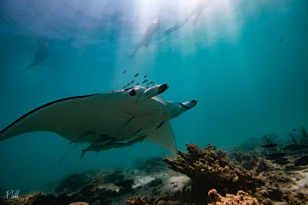 The Manta Rays are also unique. They swim against the current to suck krill from the water. So we swim after the manta rays, 2-3 swims and they are gone. Nature is simply magical.