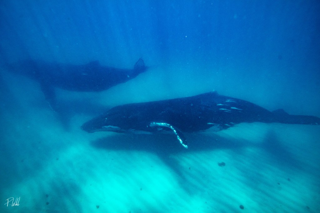 „Look at me where I show you in the water where they are. It is possible that you look somewhere and they are gone again. Okay. Got it. Also, we are not supposed to jump into the water, but to glide slowly. All snorkelers form a long chain so that we look like a big animal. And then we see the whale, right before our eyes. I would have loved to scream, but the snorkel in my mouth made that impossible. These animals are so breathtakingly beautiful. And move, like mantas so elegant and fast in the water!