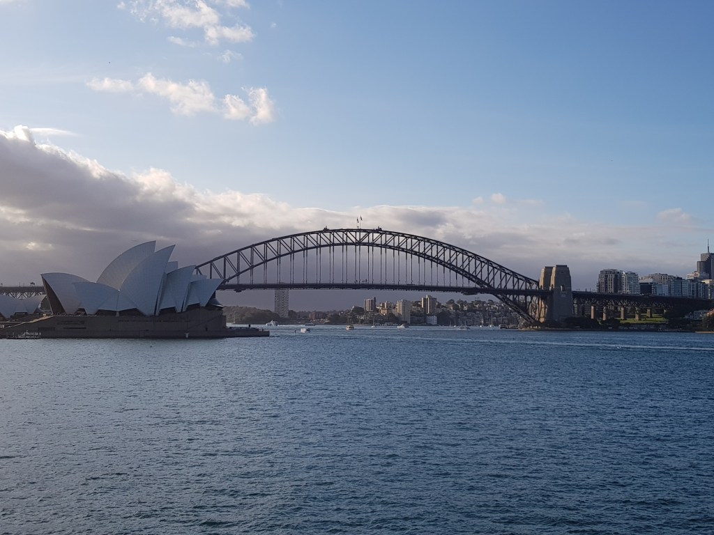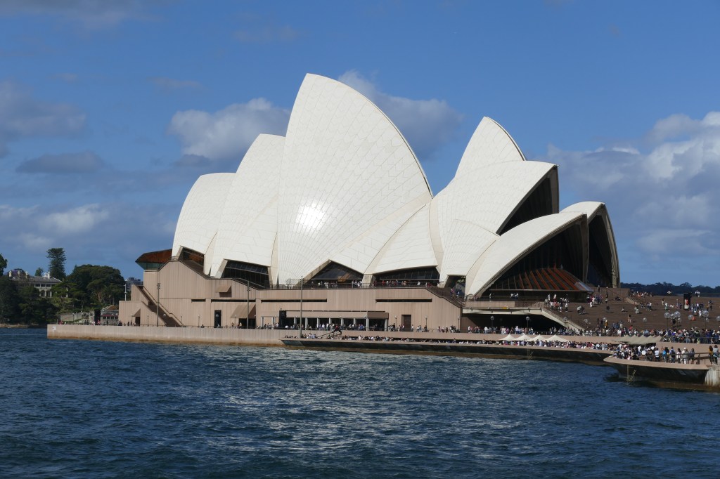 20.000 Jahre alte Geschichte – so ganz spürt man das nicht bei der Einfahrt in den Hafen von Sydney. Mit relativ hohem Wellengang durch den südpazifischen Ozean geht es 30km auf dem Paramatta River zum Port Jackson, eingekesselt in Hochhäuser. Den Blick immer gerichtet auf die zwei Wahrzeichen Sydneys: der Harbour Bridge, der größten Stahlbrücke der Welt und der Oper, architektonisch ein Unikat. Sie ruft einen förmlich die ganze Zeit zu sich, um endlich mit dem Schiff im Hafen festzumachen. Bei Sonnenschein blenden die weißen Segel des bekanntesten Opernhauses und es ist jedes Mal ein herrlicher Anblick, wenn ein Dampfer oder Segelschiff an ihr vorbeizieht und den Royal Botanic Garden passiert.