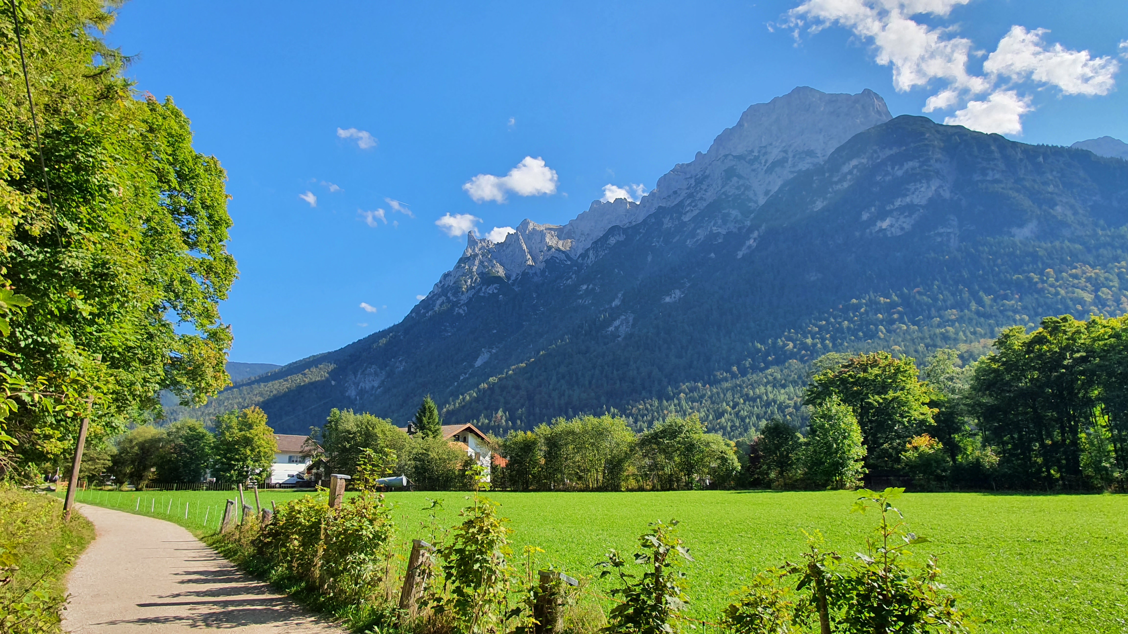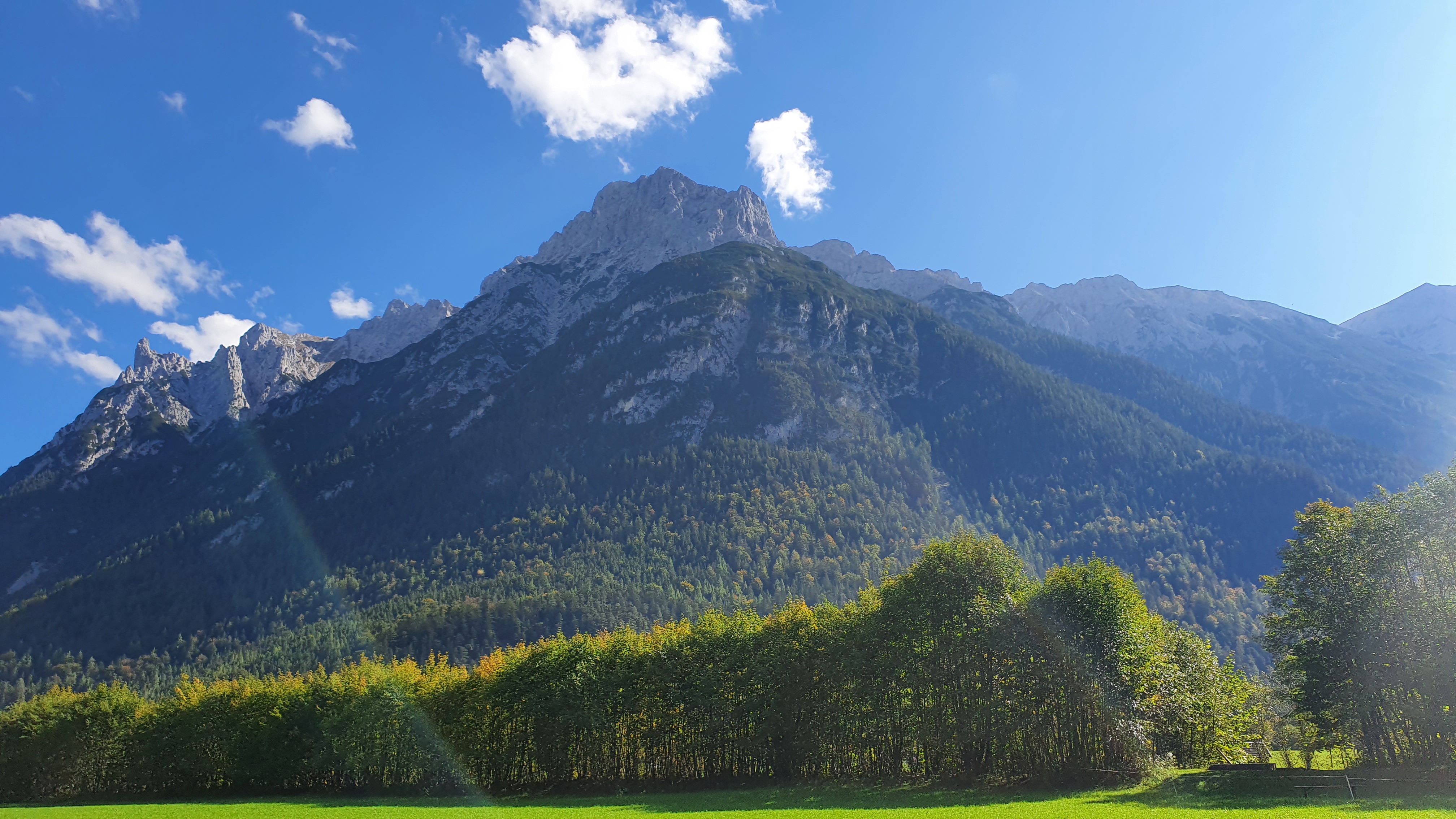 Ende September war sehr gutes Wetter und die Abende in München konnte ich mit Freunden genießen. Am Wochenende wollte ich wandern gehen, nicht wissen, das die Alpen erst im Süden Münchens beginnen. Mittelgebirge kenne ich von meinen Eltern im Erzgebirge, doch ich wollte richtige Berge sehen. Also entschied ich mich nach kurzer Recherche runter ins Karwendelgebirge zu fahren. Meine geografischen Kenntnisse im Süden Deutschlands sind nicht so fundiert und so staunte ich nicht schlecht, als ich in Kochel am See und am Walchensee vorbei kam, die ich auf meiner Sommertour 2020 besucht hatte. Ich fuhr an beiden Orten vorbei und nach einer Fahrzeit von 1:40h kam ich am Karwendel an. Ich parkte auf der deutschen Seite im Ort