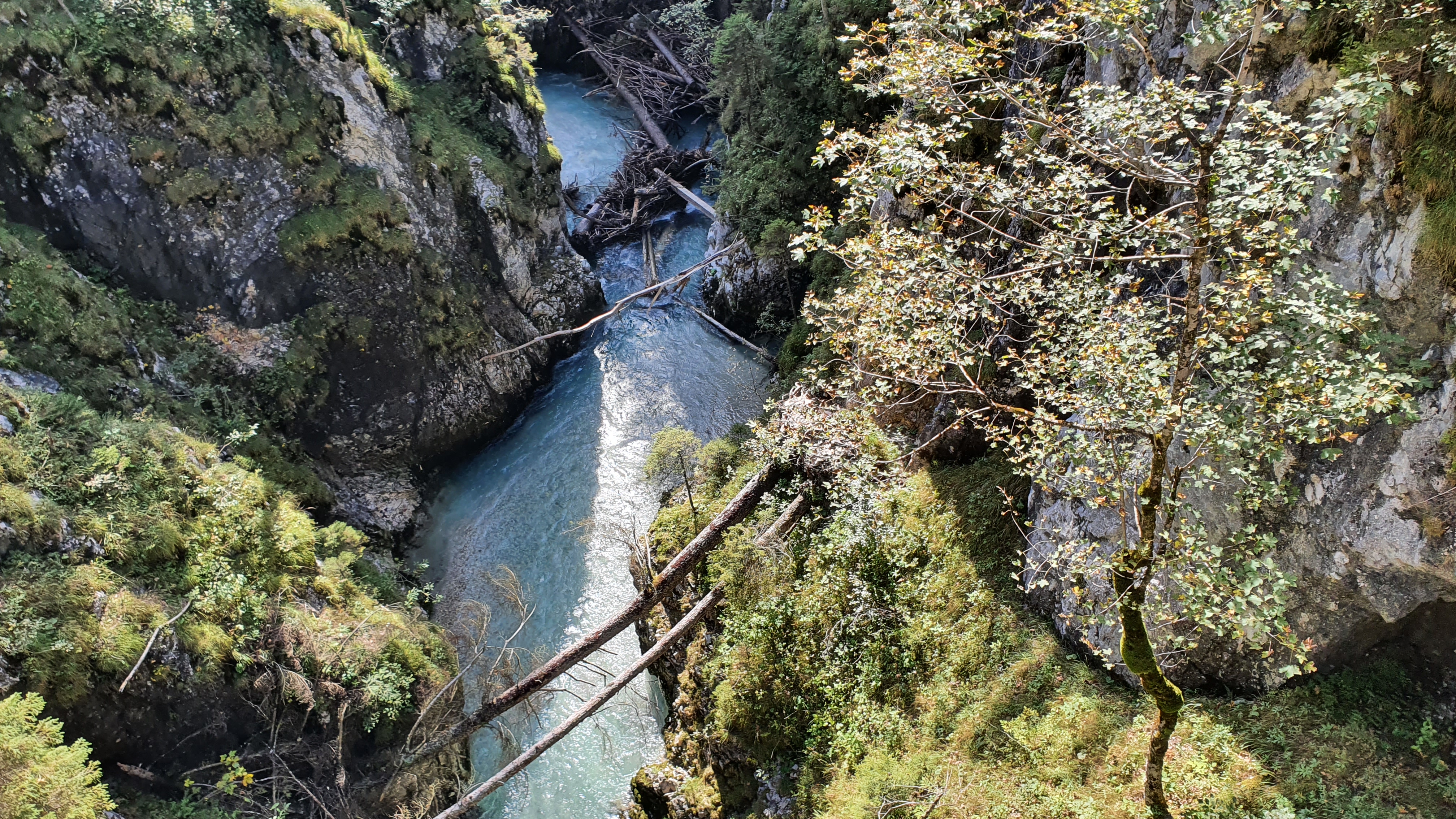 Either you walk straight on through the forest and eventually come to another parking lot or you keep to the right and complete the tour. I liked this side even better because you walk across the gorge for a long time. It’s really breathtaking and I’m glad that the xy and xy implemented this project. Because without the high trail along the mountain massif, you would never have the view of the gorge. The flow is much too powerful and the gorge too narrow for one to walk along the sides. Due to the technical achievement, even families with small children can easily walk this excursion.