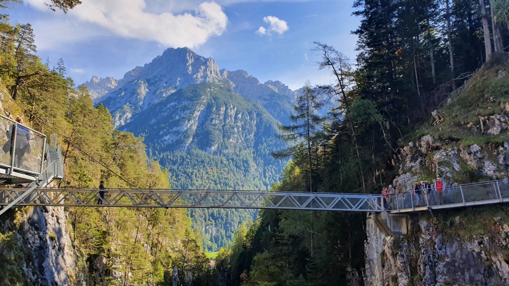 My route should lead me to the Leutachklamm. If you are looking for a trip into the mountains with a nice photo motif, this is the place to go. The suspension bridge (the photo motif) was installed for 27 million euros and provides decent traffic.