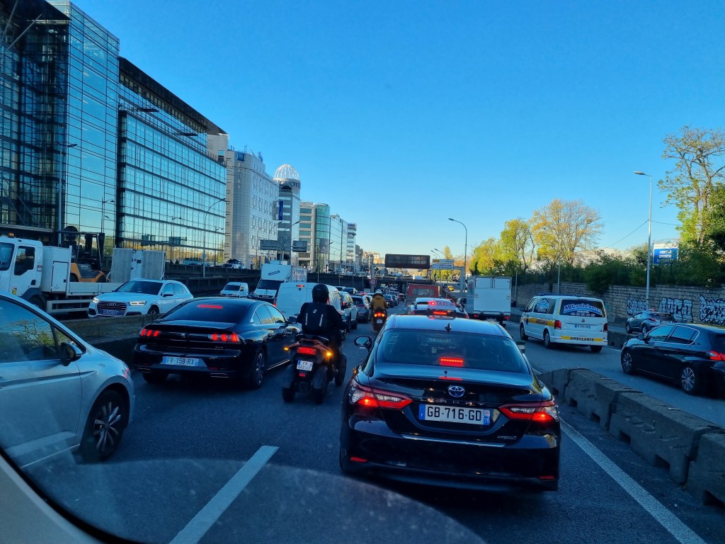 Mir sagte mal jemand, wenn man zur Mittagszeit nach Paris reinfährt, hätte man vielleicht Glück und es wäre mal kein Stau. Ja ich denke, so kann man das formulieren. Stop and Go aber schon.