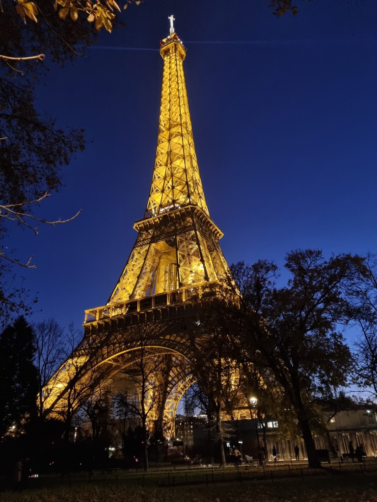 I cross here still the Invalidendom and would like to end my round finally in the evening at the Eiffel Tower. When it is dark, it is illuminated. But it is even more beautiful when it glitters like a thousand stars at every full hour. It’s a spectacle. You can pick up a miniature at various sales. So the small and the big tower glitter around each other. Touching.