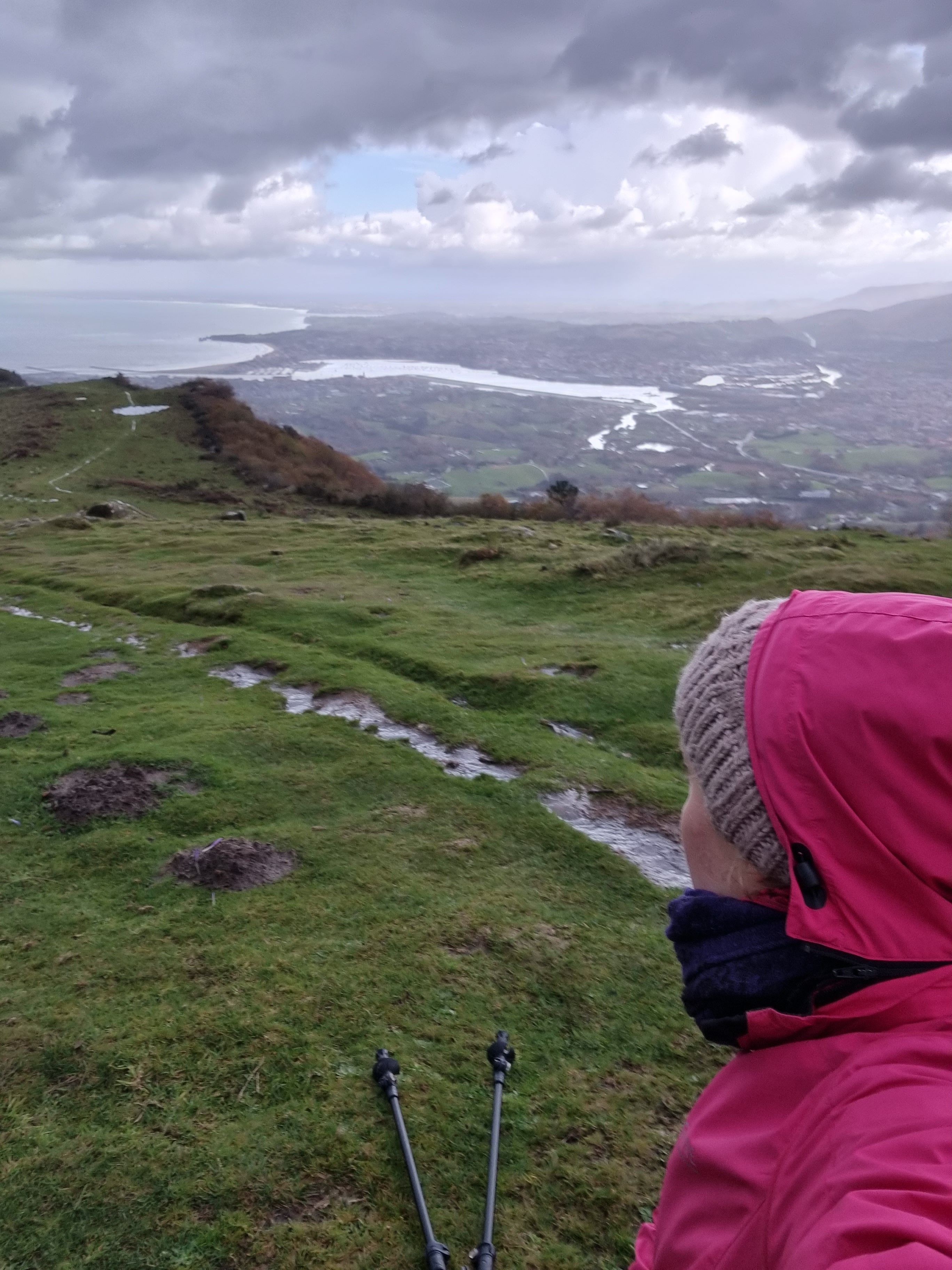 Ich habe mich schön eingerichtet und stapfe direkt noch 16 Uhr zu meiner ersten kleinen Runde los. Da ich in Nordspanien bin, habe ich zwei Stunden mehr Helligkeit als in Hamburg. In Hamburg wird es im Winter gegen 8.30h richtig hell und schon gegen 15.30h dämmert es. Bis 18 Uhr möchte ich aber am Wagen zurück sein. Ich laufe also den Berg nach unten und verstehe, warum einige bewusst diese Etappe „andersrum“ als chronologisch vom Jakobsweg laufen. Außerdem verlaufen viele Wanderwege, so zum Beispiel der GR 11 grand route auf gleichen Pfaden wie der Camino del Norte. Der Ausblick runter zum Wasser ist gigantisch. Der Weg ist ziemlich aufgeweicht durch den ganzen Regen und richtig dicker Matsch klebt an meinen Schuhen. Da weiß ich, das ist eine gute Wanderung. Nach 45 Minuten kehre ich um und straze den Berg wieder rauf. Ich freu mich auf einen schönen, warmen Tee.
