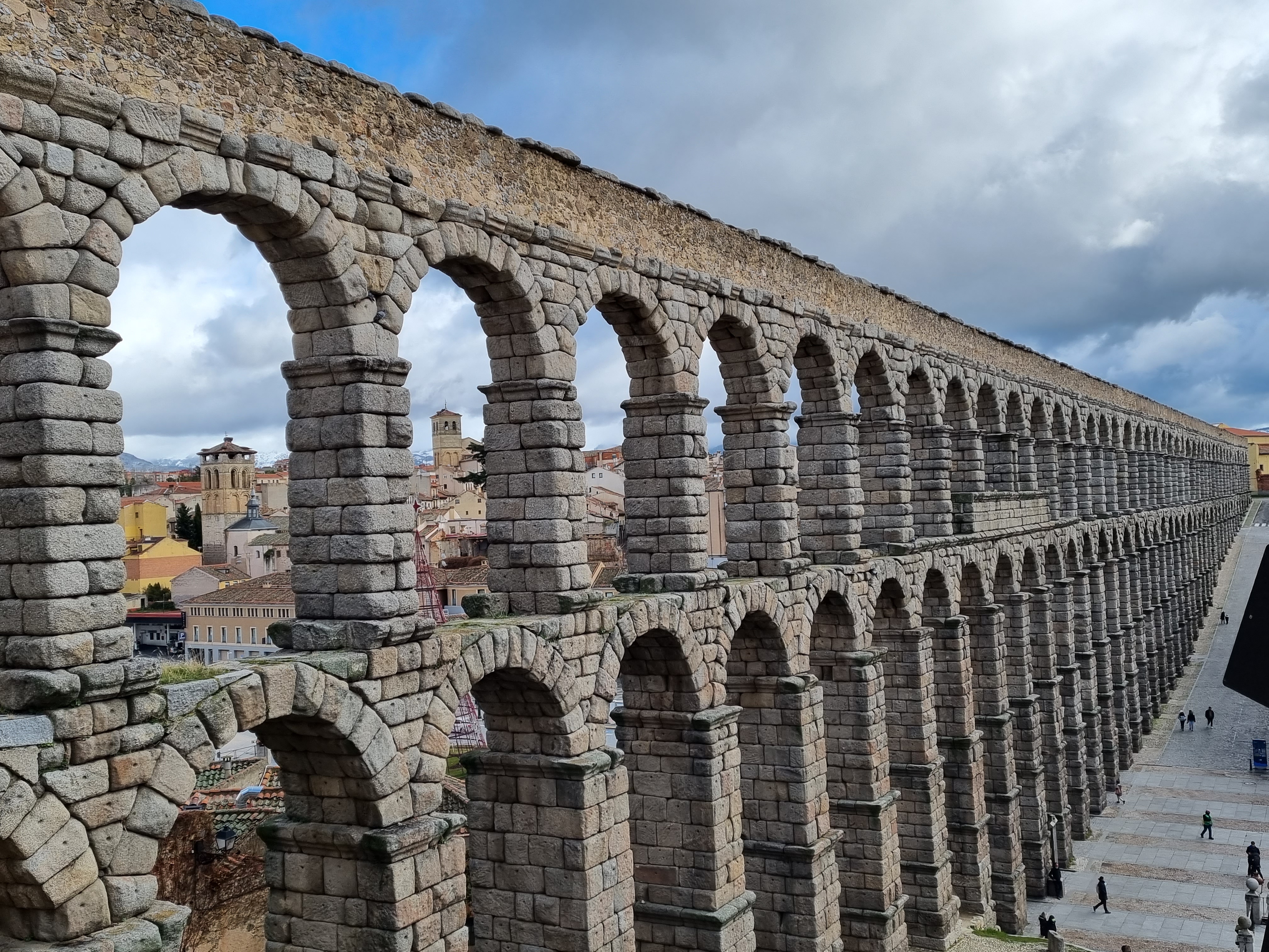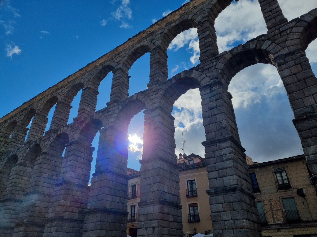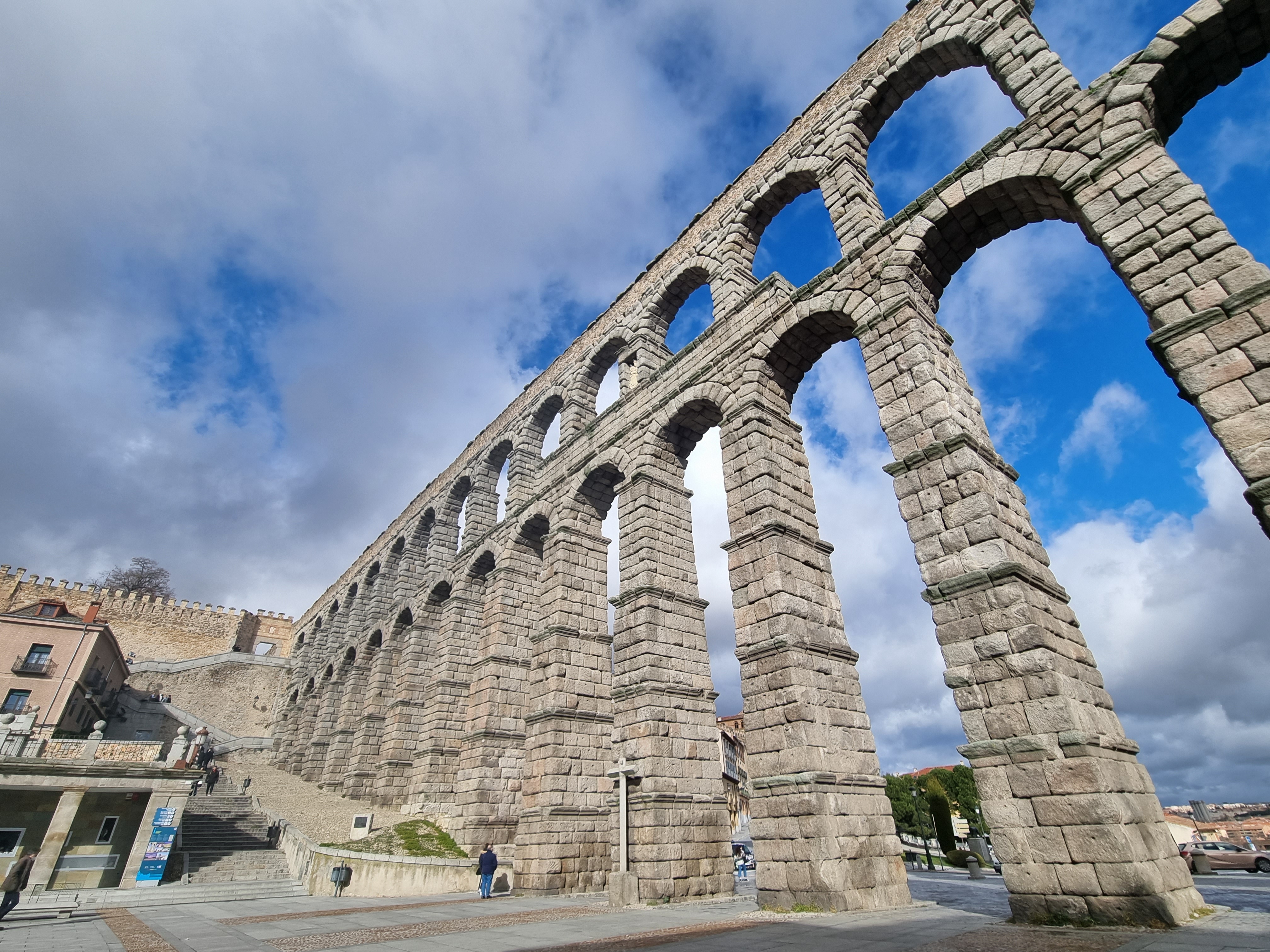 Die wichtigste Sehenswürdigkeit in Segovia ist das Aquädukt, was von den alten Römern 98 n. Chr. Angefangen wurde zu bauen. Was eine Meisterleistung, Stein um Stein in die Höhe von maximal 28 Metern, mit 169 Bögen. Unten sehr massiv, kreuzen sich einige Bögen erst in 4,50 Meter Höhe. Das ist zur damaligen Zeit eine neue Bauweise und somit konnte enorm viel Material gespart werden. Das Aquädukt ist auf jeden Fall atemberaubend.