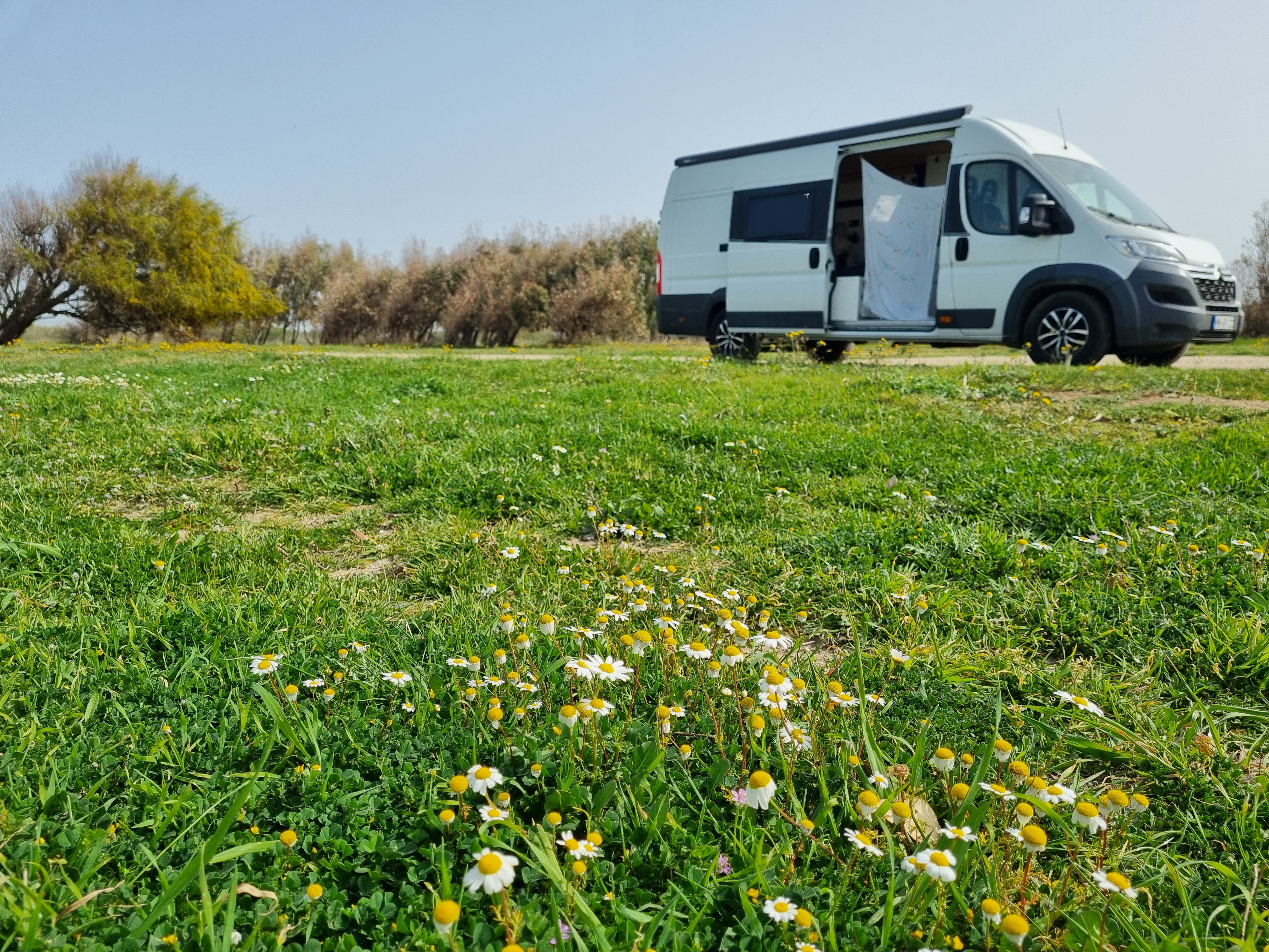 The campground is 18 minutes from Olbia and just right for the first night. The dogs in Italy are active. There are actually only about 20 pitches on this simple campsite. For the toilets you have to pay one Euro. Even better, the showers are outside. This may not be a problem in summer, but in spring it is a bit chilly to shower outdoors.