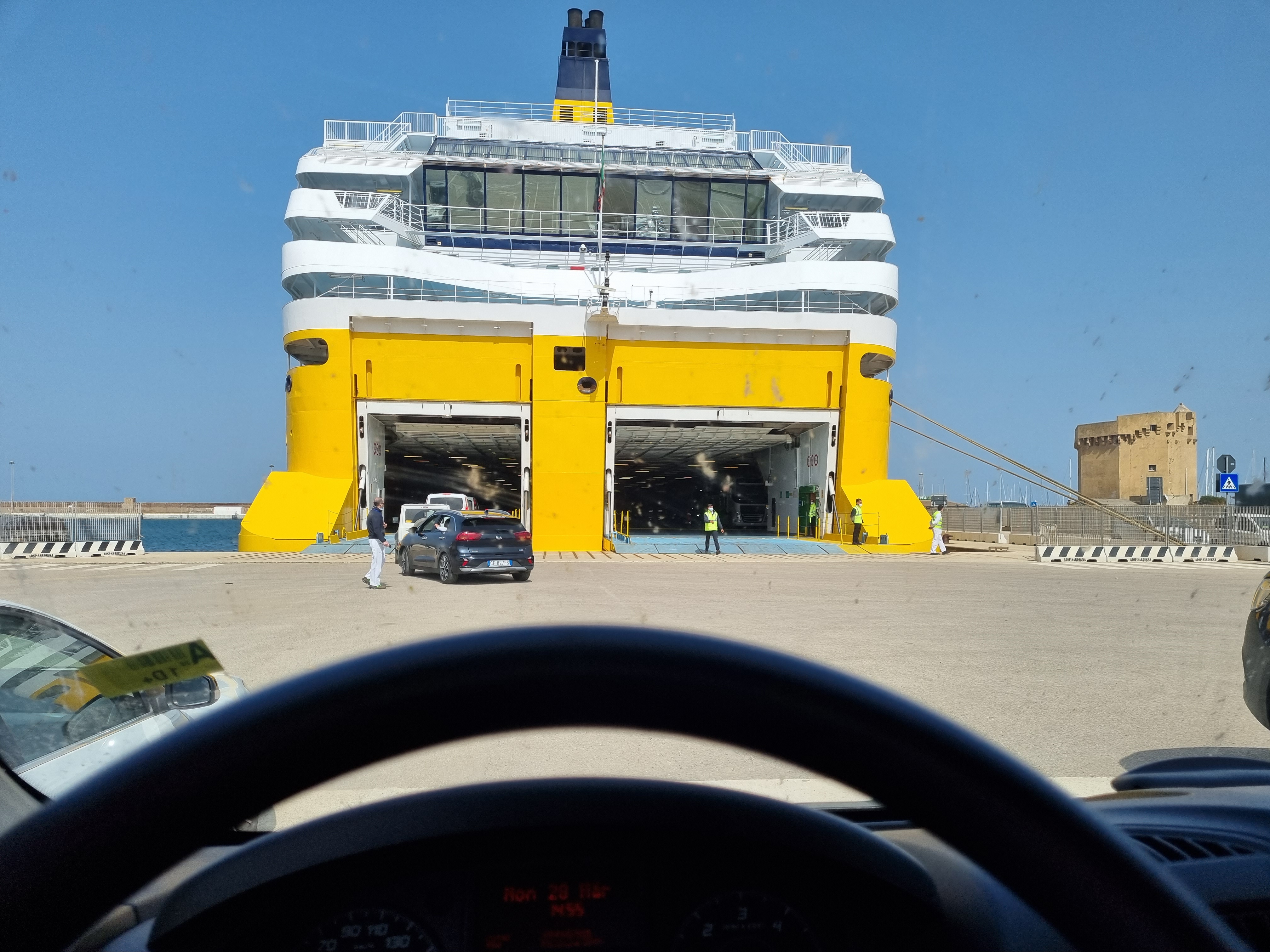 Corsica Ferries ist etwas schneller und organisierter als Grimaldi, die 4 Stunden lange Überfahrt kostet 120 Euro. Ich bin ebenfalls 2 Stunden vorher da, wir können bereits eine Stunde eher an Bord, alles läuft nach Plan.