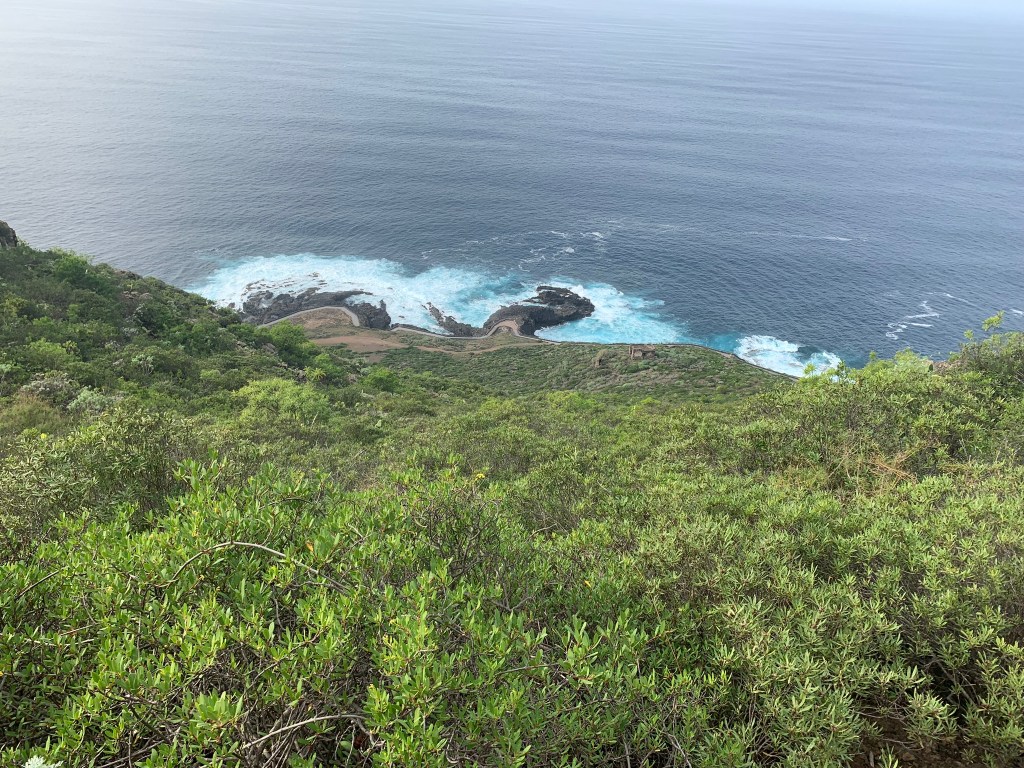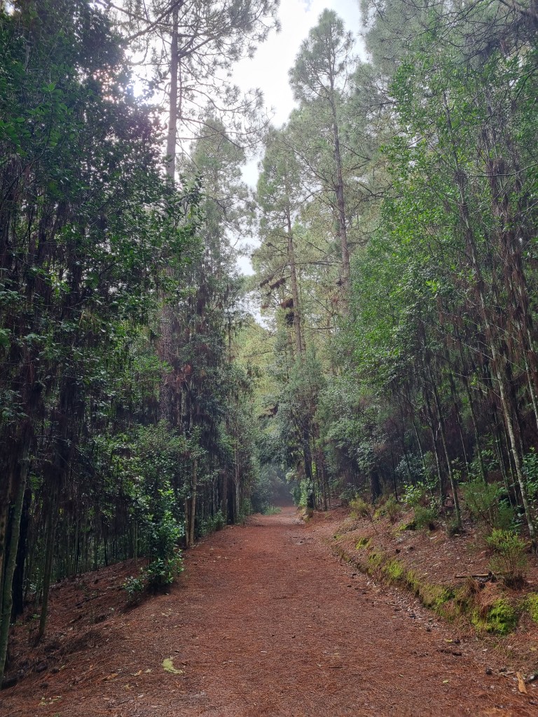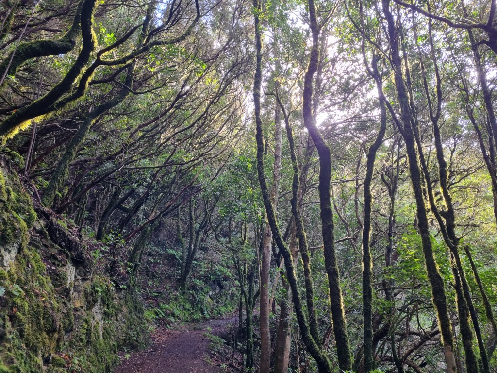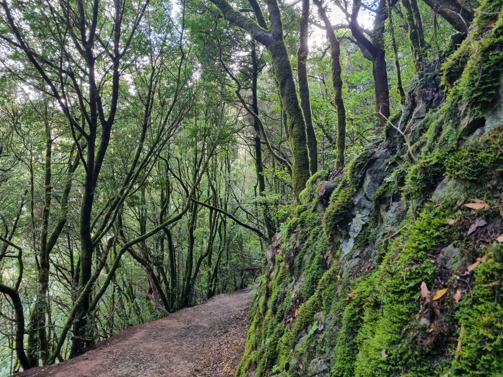 Der erste Teil des Weges führt durch einen alten Wald, der immergrün ist, durch den Passatwind.