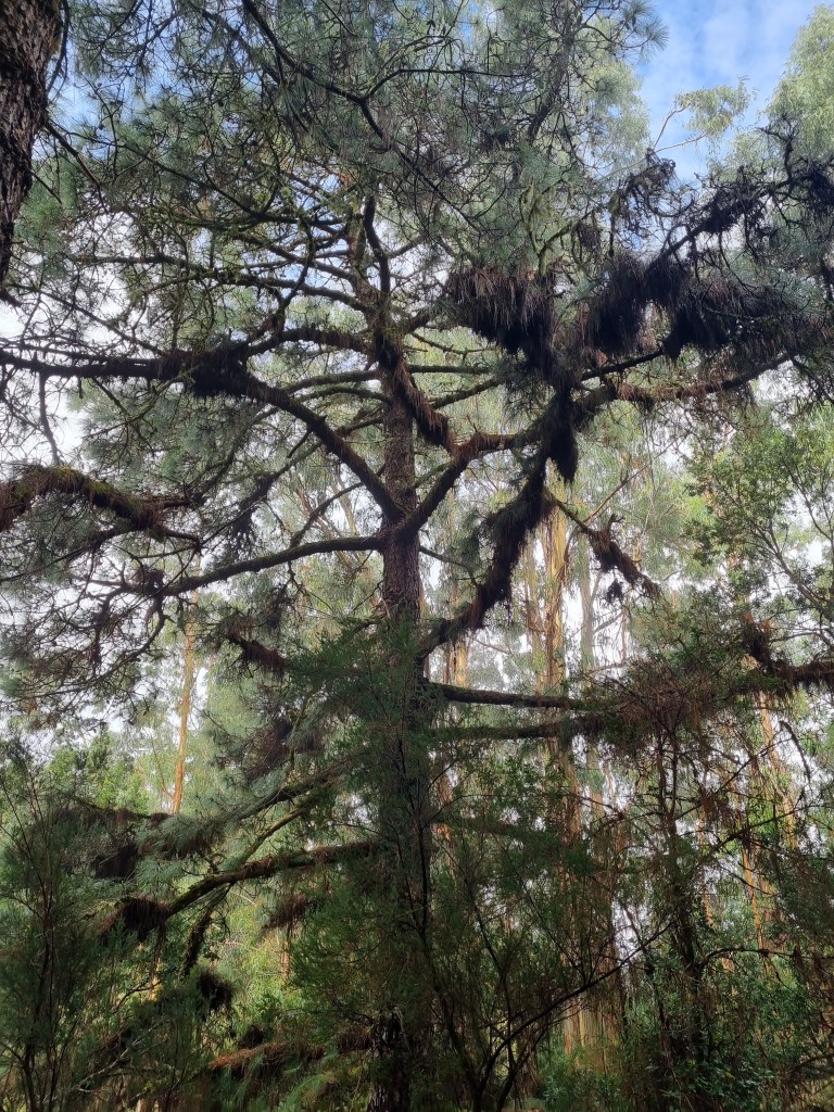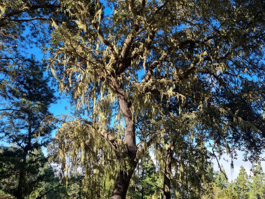 Anaga is a forest with old trees, for example eucalyptus or pines. The trees draw moisture from the trade wind clouds. In the morning it is often cloudy here and you can see the single water drops, so to speak the dissolved clouds. Hence the name cloud melter.
