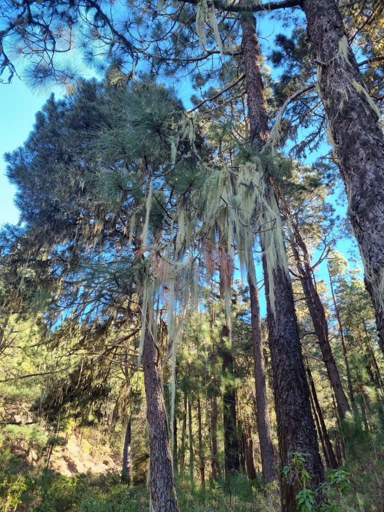 Anaga ist ein Wald mit altem Baumbestand, zum Beispiel Eukalyptus oder Kiefern. Die Bäume ziehen aus den Passatwolken die Feuchtigkeit. Morgens ist es oft bewölkt hier und man kann die einzelnen Wassertropfen, sozusagen die aufgelösten Wolken sehen. Daher der Name Wolkenmelker.
