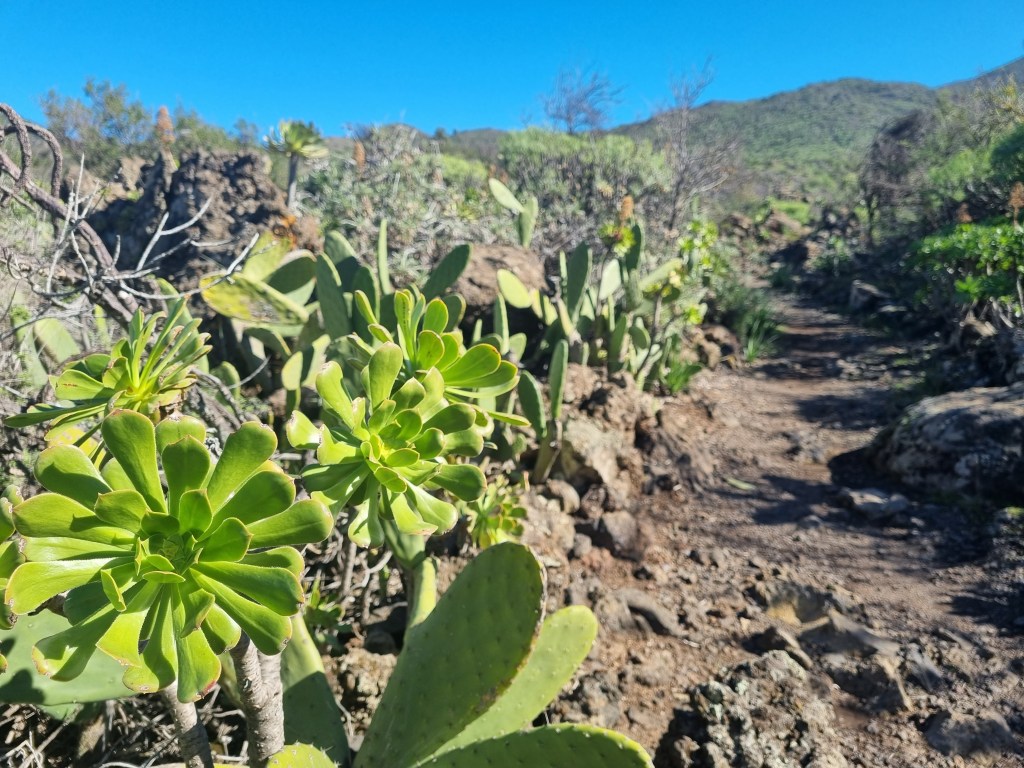 Nicht nur der Teide, auch andere Vulkane kann man auf Teneriffa besichtigen. Ab Santiago del Teide führt ein Wanderweg zunächst durch Kakteen. Später läuft man in den alten Lavaströmen. Trittsicherheit vorausgesetzt, denn die Lavaklumpen sind mitunter sehr groß. Eine ganz andere Umgebung.