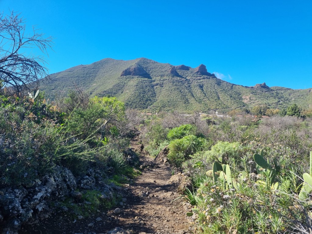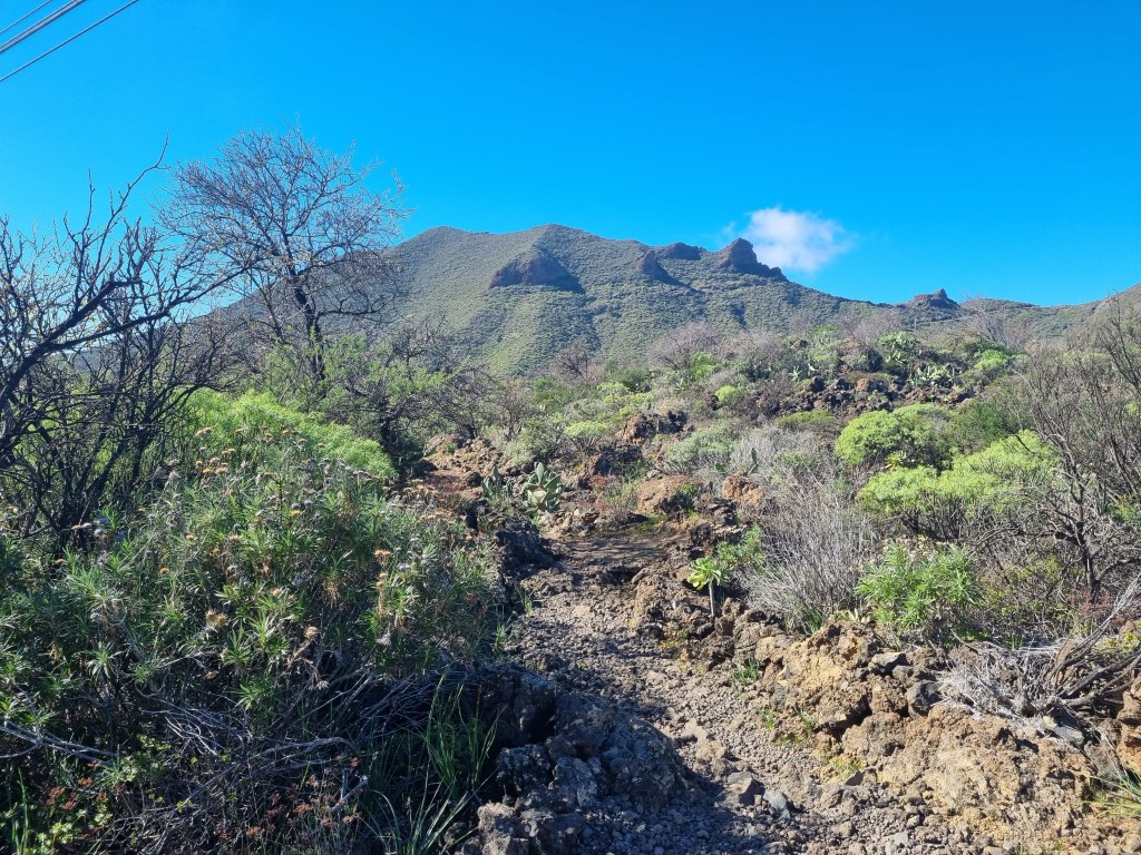 Der zweite Teil führt über Felsen, meist in der Sonne. Doch gelegentlich ändert sich die Laufseite zum Berg, daraus resultieren kühle Winde. Aufpassen bei der Abbiegung TF 10.1., an einem Strommast geht es nach Las Caboneras.