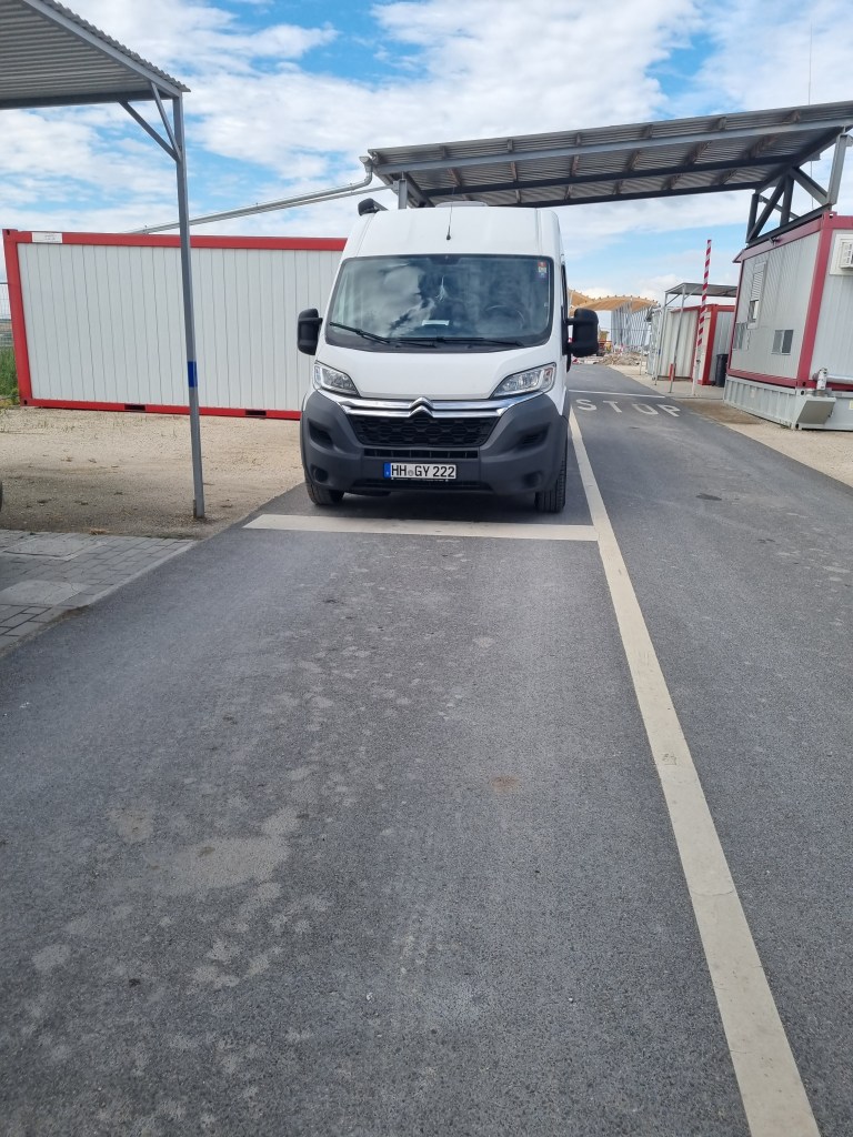 Wir haben uns einen kleinen Grenzübergang ausgesucht, weil auf der Autobahn zwei Stunden Stau eingezeichnet war. Das ist auch ein Tipp an der Stelle: Vorher checken, ob an den Grenzen Stau ist, zum Beispiel per Google, sonst lieber einen Umweg in Kauf nehmen und gemütlich fahren.