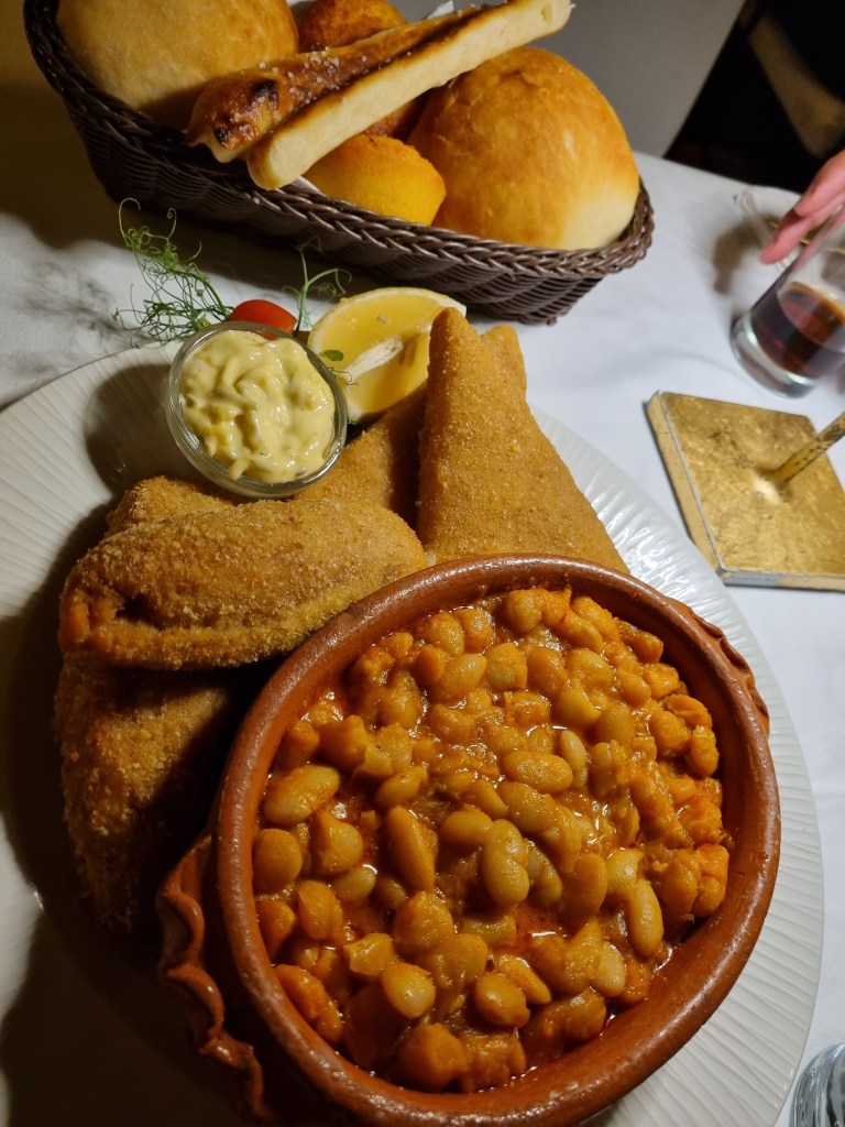 Wir laufen durch die traditionellen Straßen, wo es einheimisches Essen gibt. Natürlich sind hier nur Touristen unterwegs, aber das Flair ist nett. Wir können zwar nicht draußen sitzen, haben aber einen Platz ergattert in einem schickeren Restaurant mit Live Musik. Vor Ort feiert jemand Geburtstag. Ich kann mich nicht mal ganz setzen und werde zu einem Tanz eingeladen, wo wir im Kreis um die Tische tanzen.