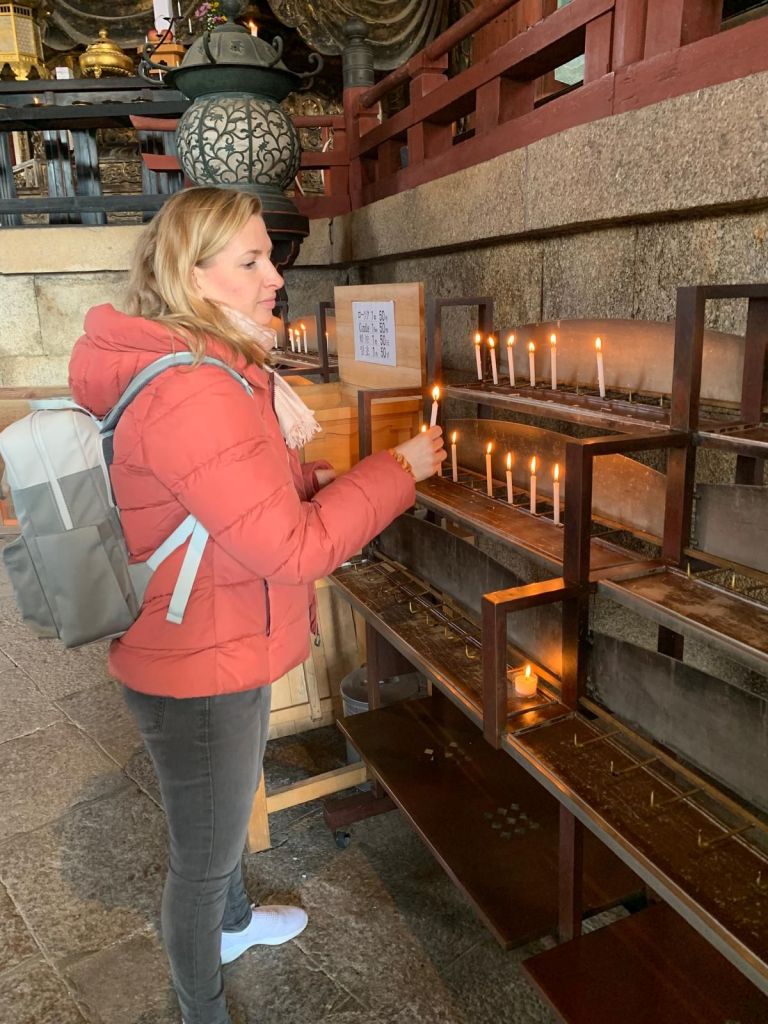 Der Todai-ji ist einer der sieben großen Tempel Naras und beeindruckt nicht nur durch seine Größe, sondern auch durch die andächtige Stimmung, die Besucher hier erfahren. Wer mag, kann sich vor der Statue etwas wünschen – eine berührende Tradition. Ich habe Kerzen für meine Familie entzündet.