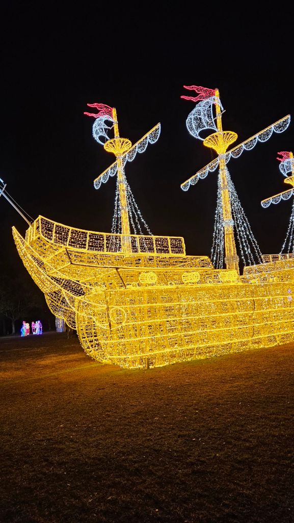 Wir wollten abends eigentlich das Schloss anschauen, sind aber im Park falsch abgebogen und haben aus Versehen, den Japanischen Christmas Garden im Schloss angeschaut, von dem aus man nicht das Schloss ansehen kann. Das haben wir dann hinterher gemacht.