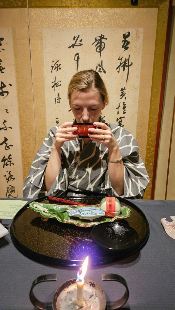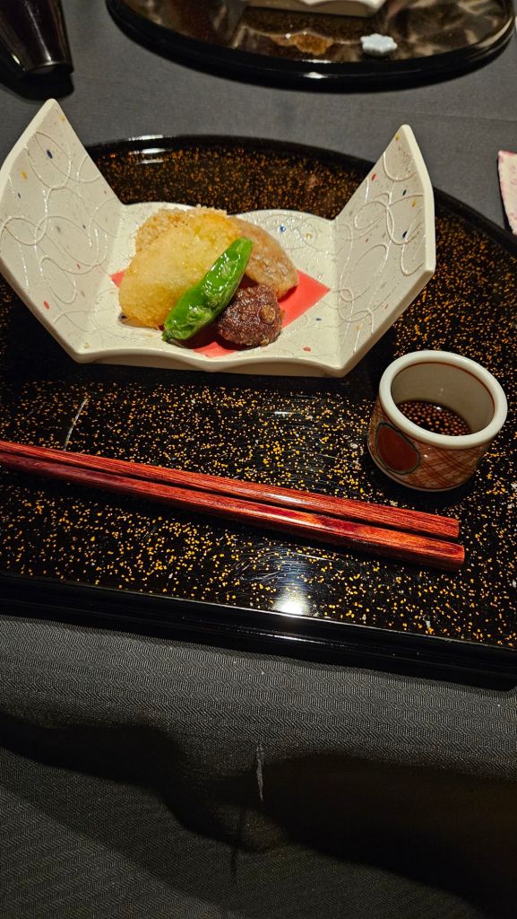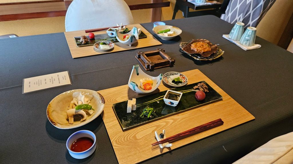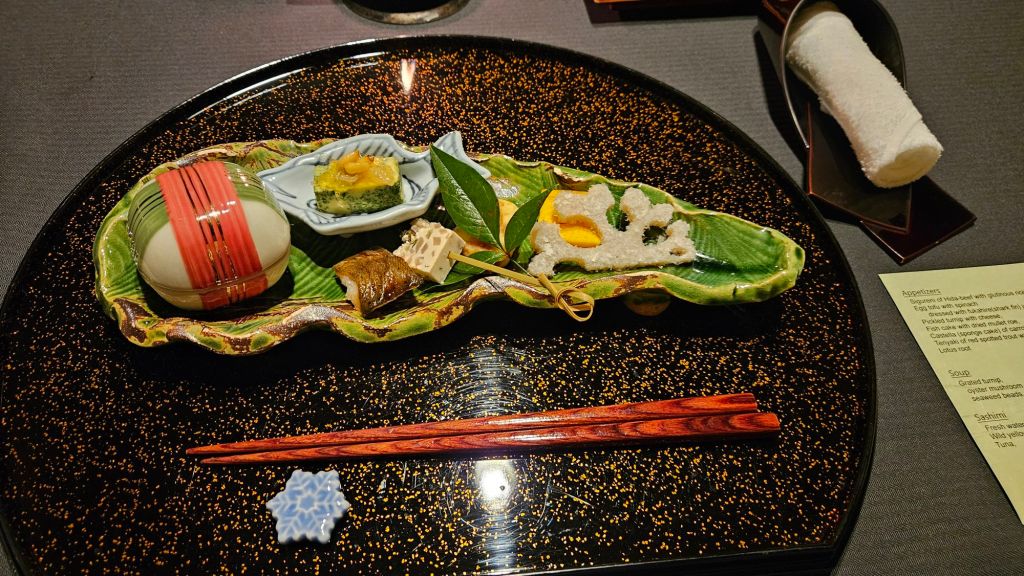 Das Abendessen, ein traditionelles Kaiseki-Menü, war ein kulinarisches Highlight.
