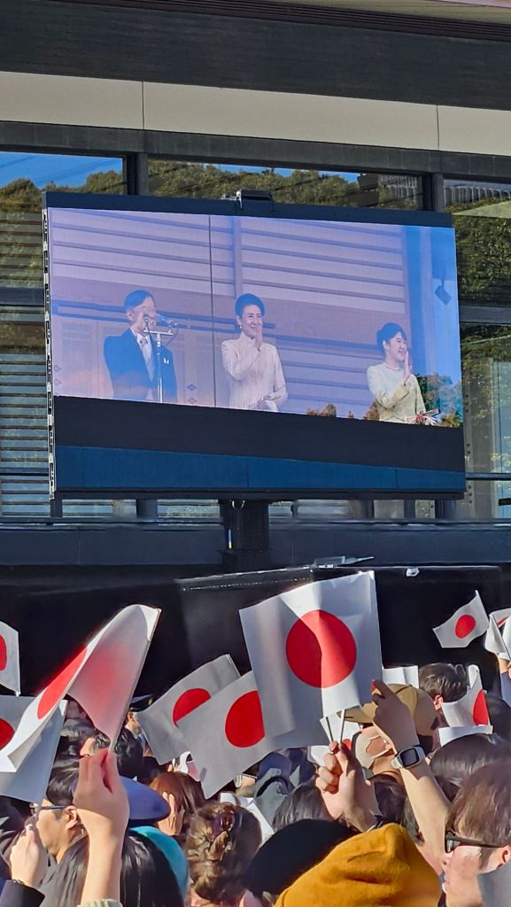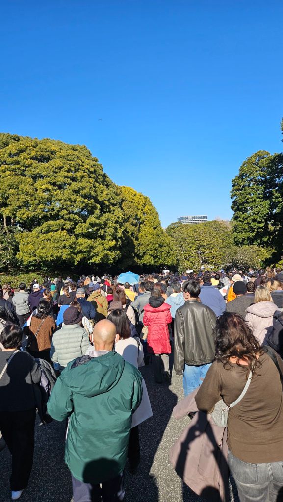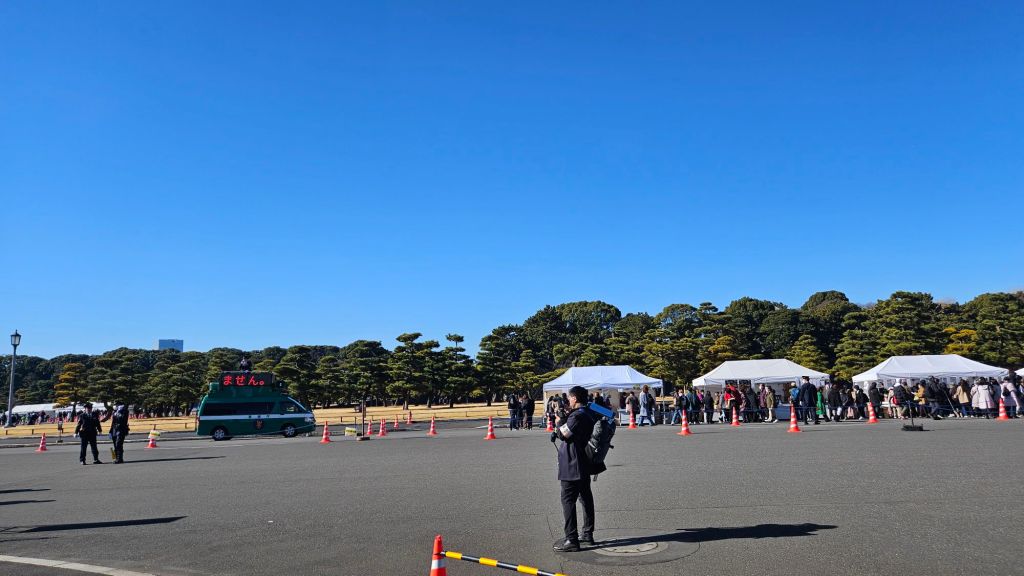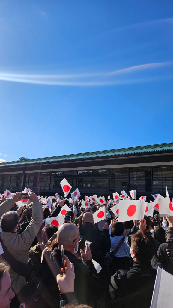 As expected in Japan, the crowd exited the area quickly, in an orderly fashion, and with proper spacing. This part of the palace is only opened for special occasions. The flags could be returned afterward.