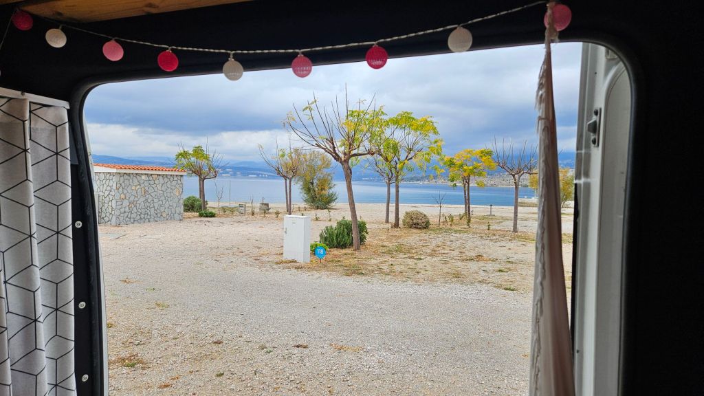 Hier habe ich einen Stellplatz direkt am Meer.