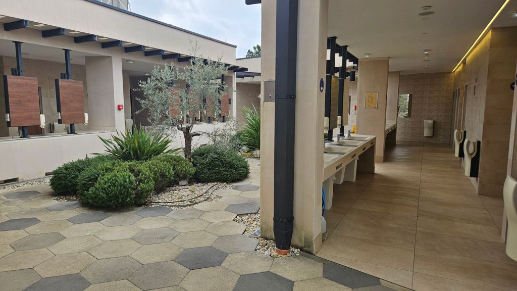 Der Campingplatz ist ein 5 Sterne Platz, super schöne Sanitäranlagen. Allerdings auch eher bei wärmeren Temperaturen zu empfehlen, weil die Waschbecken und dort, wo man sich zb fönt, alles draußen also outdoor ist. Bei kühleren Temperaturen, wie im November, schon eher frisch.
