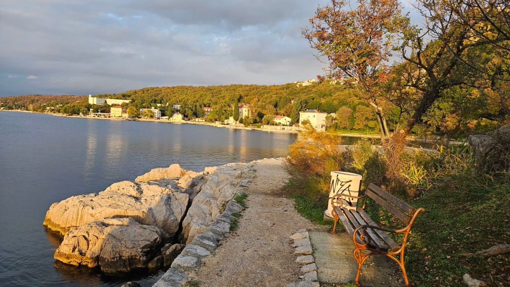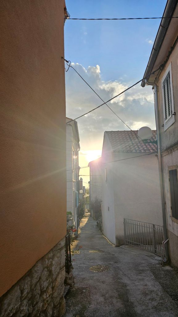 Ich besuche noch die Stadt Omisalj zum gleichnamigen Campingplatz. Die Stadt ist ca. 5-10 Autominuten entfernt. Sie hat unten einen kleinen Hafen und eine wunderschöne Promenade, von der aus ich zurück zum Camper laufe.