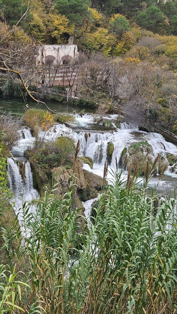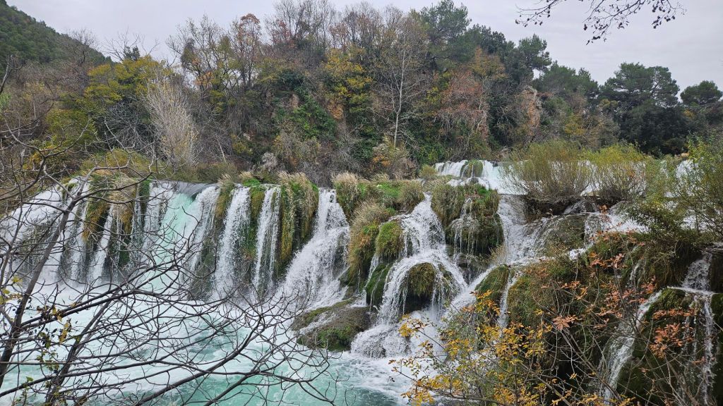 Auf Grund des kalten Wetters um den Gefrierpunkt, entscheiden wir uns nicht für die Plitvicer Seen, sondern für den Park Krka. Hier gibt es einen großen Parkplatz, wo man das eigene Auto stehen lassen muß. Entweder fährt man mit einem Shuttle Taxi runter zu den Wasserfällen oder wandert, wie wir.